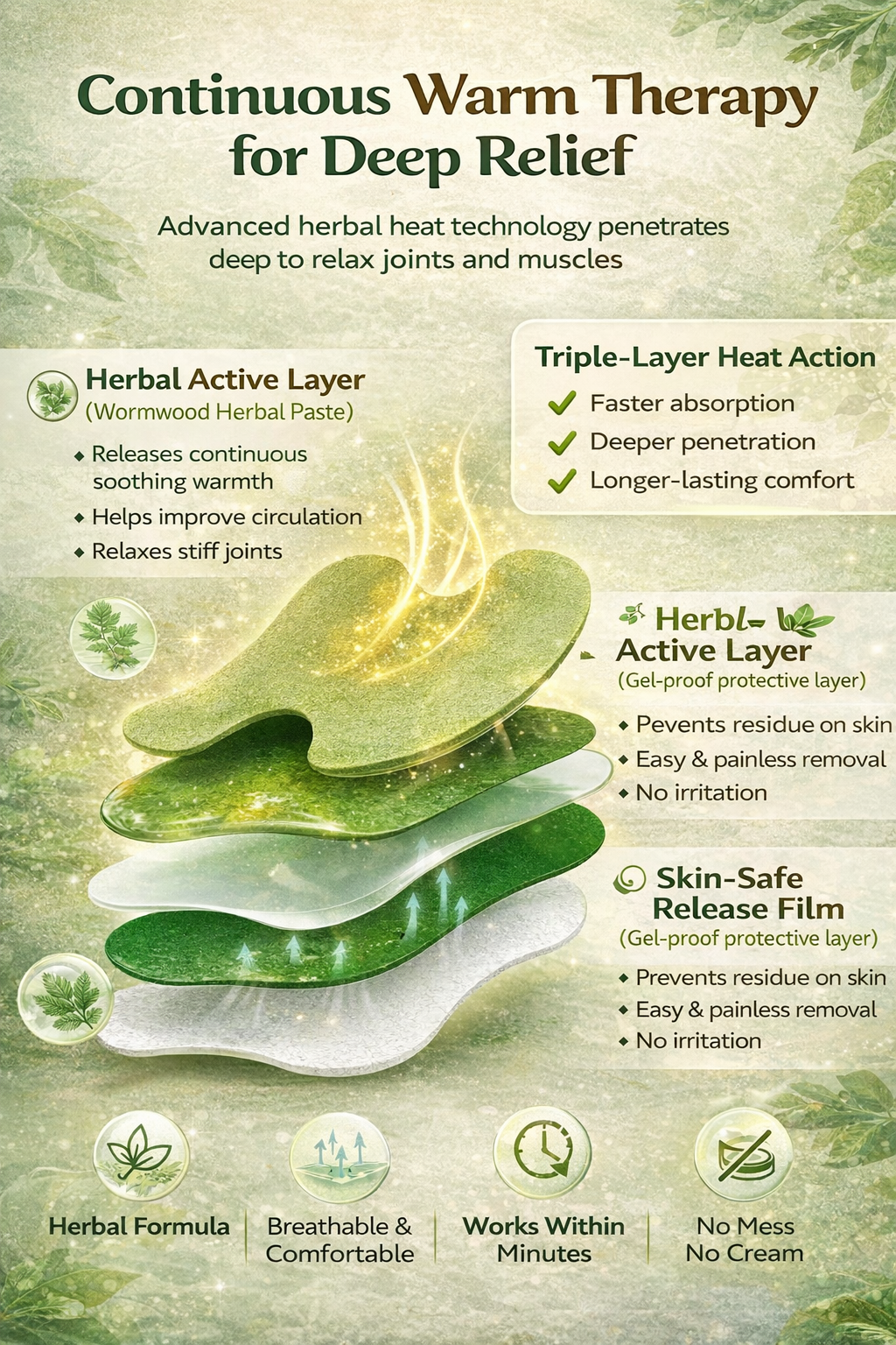 The patches provide gentle warmth and deep comfort, helping relax sore areas and support movement. They are designed for long-lasting relief without messy creams or sprays.